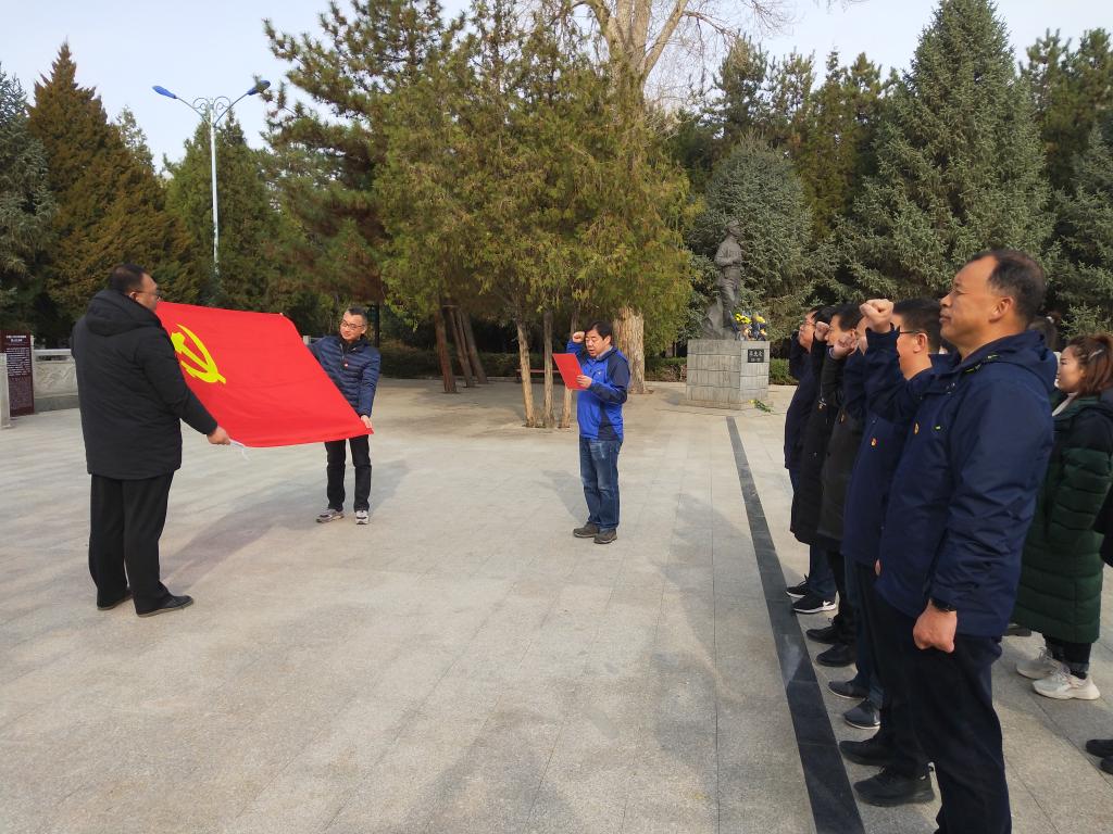 党员们来到中国工农红军西路军临泽烈士陵园,在红西路军临泽纪念碑前伫立默哀,向纪念塔敬献花篮,向英烈们献花,追思英烈的丰功伟绩。在支部书记带领下大家面对鲜红的党旗,举起右拳,重温了入党誓词。