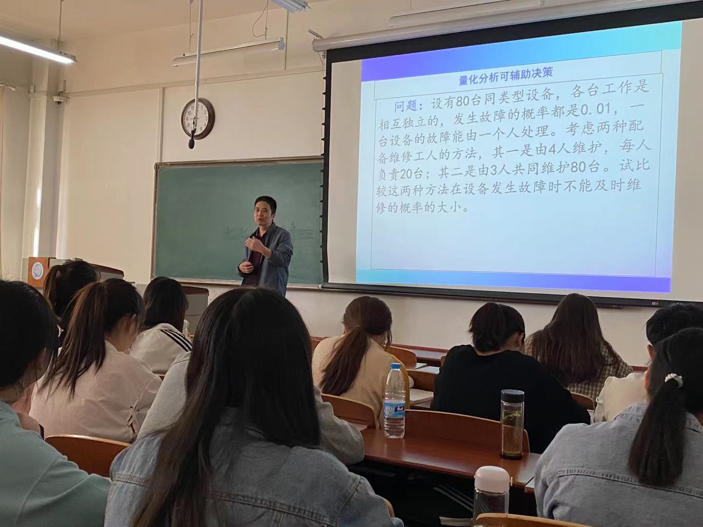 郑延福老师在《概率论与数理统计》课上结合生产运作案例讲解了离散型随机变量的概率分布,让员工了解了《概率论与数理统计》课程与管理决策的关系,理论与实践相结合。