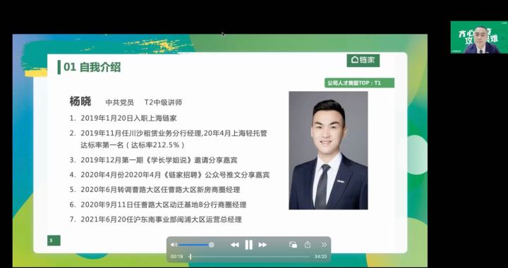 宣讲结束后,现任上海链家沪东事业部闵浦大区运营总经理的优秀员工杨晓就自己在上海链家工作的心路历程做了分享,他建议学弟学妹们要自信勇敢,保持良好心态,发掘自身亮点,放开眼界,大胆尝试。