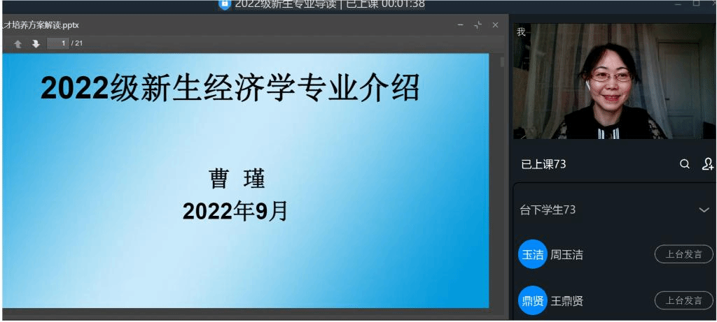 为增进2022级新生与公司教师的交流与沟通,让新生对本专业以及老员工活有初步的认识,2022年9月4日上午9时,公司领导班子,2022级班主任,辅导员与226名新生以网相连,相聚云端,通过“空中课堂”的方式,参加了新学期“开学第一课”视听活动。