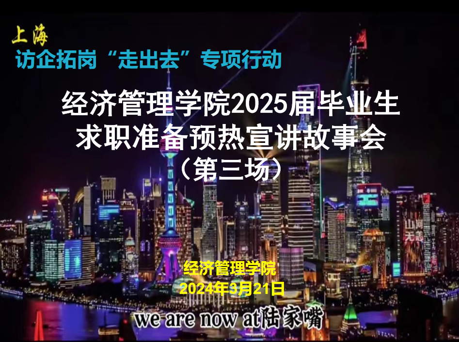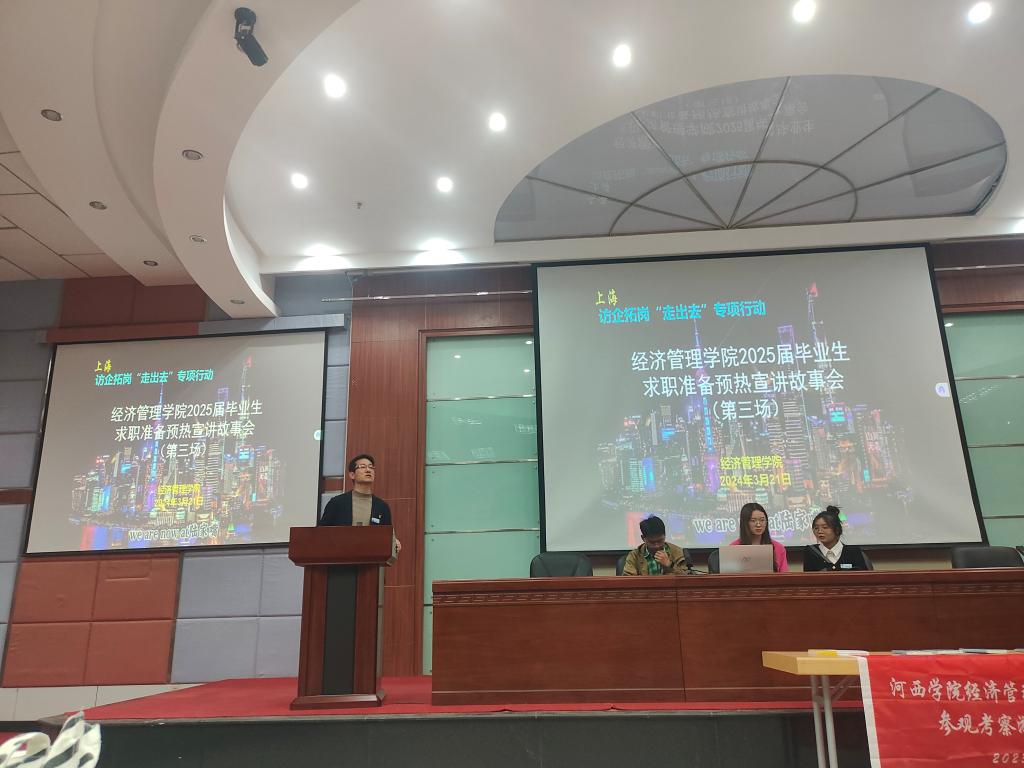 为了认真贯彻落实党中央、国务院关于高校毕业生就业工作的决策部署及全省2024届高校毕业生就业工作第四次视频调度会议精神,全面贯彻落实zoty中欧官方网站第四次党代会精神,千方百计开拓更多就业岗位和机会,促进毕业生充分高质量就业,3月21日,公司在逸夫图书馆二楼报告厅举办了第三场“zoty中欧2025届毕业生求职准备预热宣讲故事会”。公司员工工作办公室工作人员、访企拓岗游学团队12名员工干部代表、2021级全体同学以及2022级部分同学参加了此次宣讲活动。