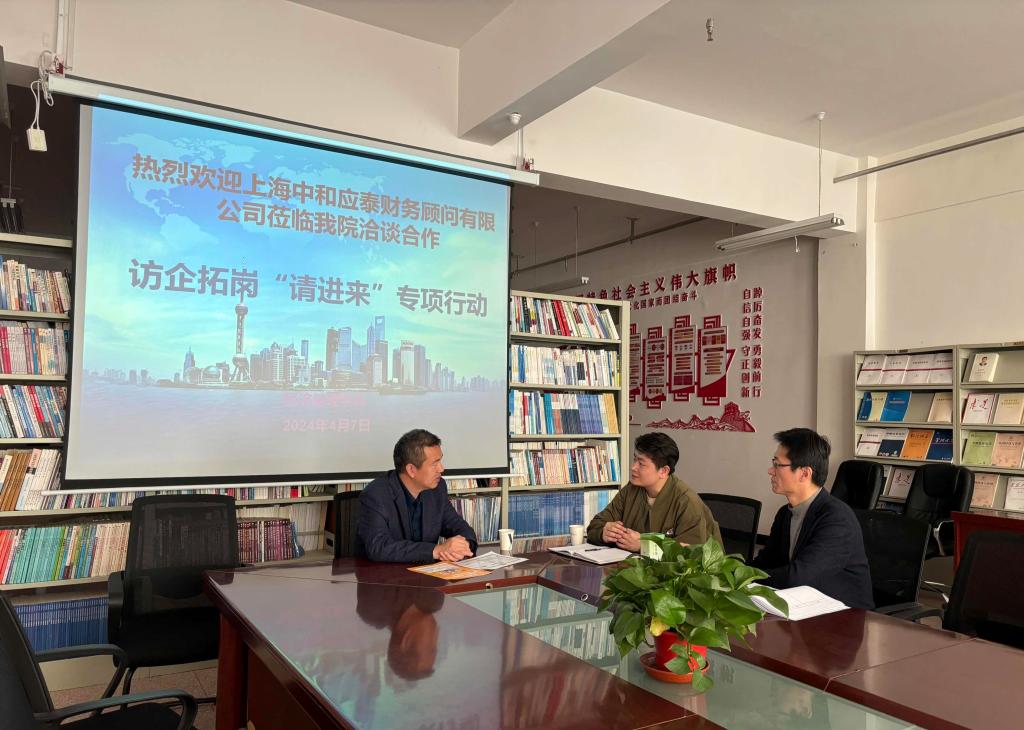 为充分发挥“访企拓岗”功效,有序开展系列化的“请进来”专项行动,联手企业共同培育高技能人才,为员工提供更优质的就业渠道和平台,千方百计促进更多优秀毕业生高质量就业,4月7日,公司邀请上海中和应泰财务顾问有限公司来院开展工作洽谈,公司分管领导参加了座谈。