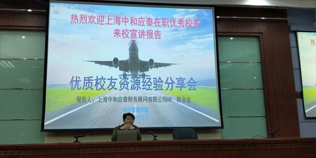 陈金金还介绍了上海中和应泰财务顾问有限公司独特的企业文化和自由发展空间,特别是企业的培养模式给自己创造的有效发展路径,极大地激发了同学们的好奇心和互动热情,为毕业生提供了宝贵的意见和建议,鼓励同学们走出去,放眼世界,也希望同学们能够加入中和应泰大家庭。