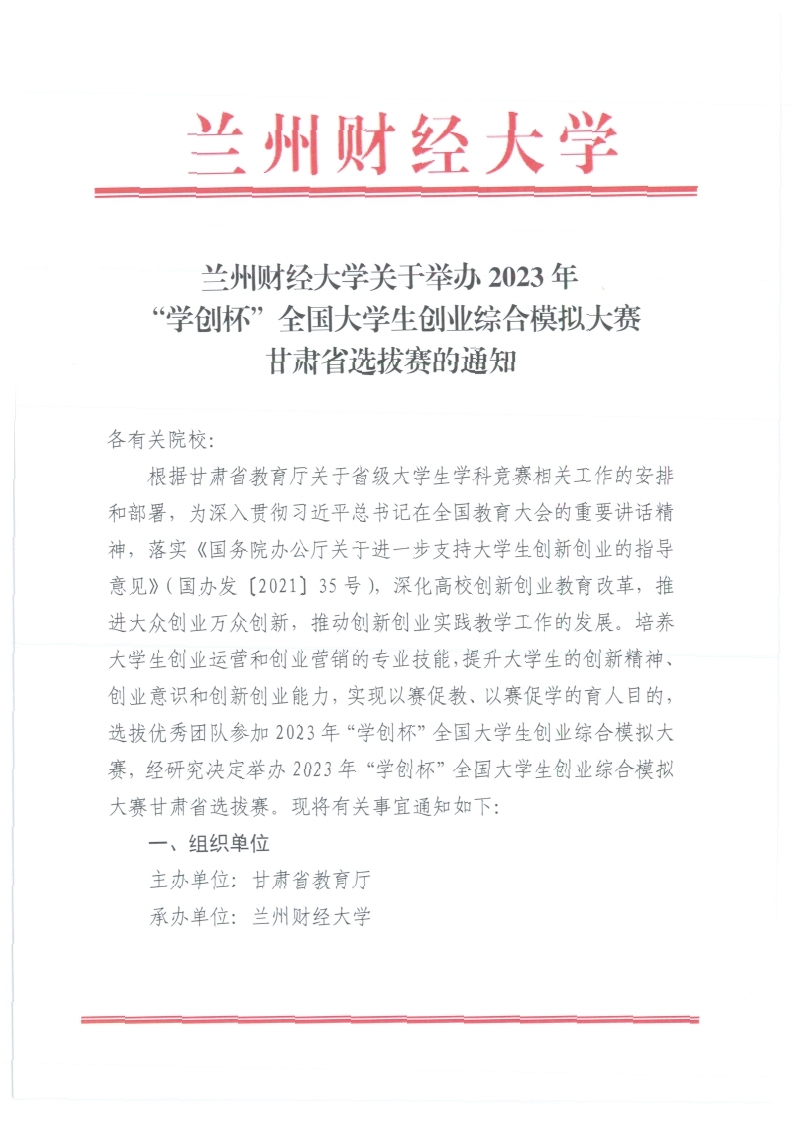 上一条:关于举办2023年甘肃省老员工数智化企业经营沙盘大赛的通知 下一条:关于征集全省“青春献礼党的二十大 强国有我新征程”高校优秀网络文化作品的通知